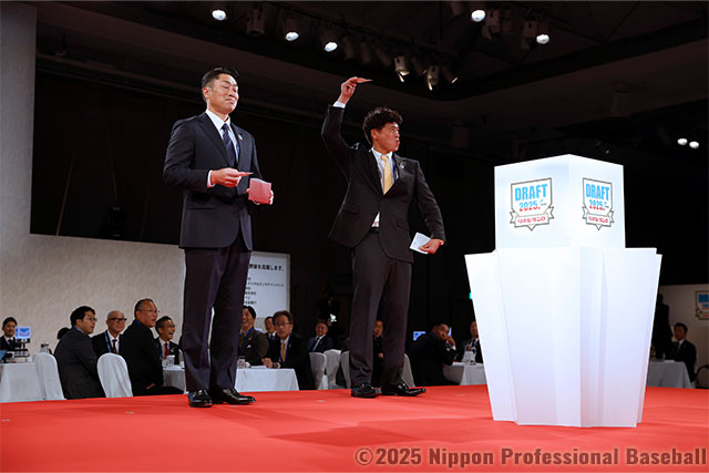 また、引き続き行われた「育成選手選択会議」には12球団が参加、育成選手43名(投手19名、捕手4名、内野手10名、外野手10名)の指名を行いました。