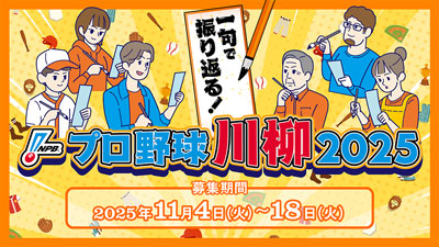 一般社団法人日本野球機構は、プロ野球2025年のシーズンを応援いただいたファンの皆さまとともにシーズンを振り返り、2026年シーズンへの関心や楽しみをさらに深めていただく企画として「一句で振り返る!NPBプロ野球川柳2025」を実施いたします。